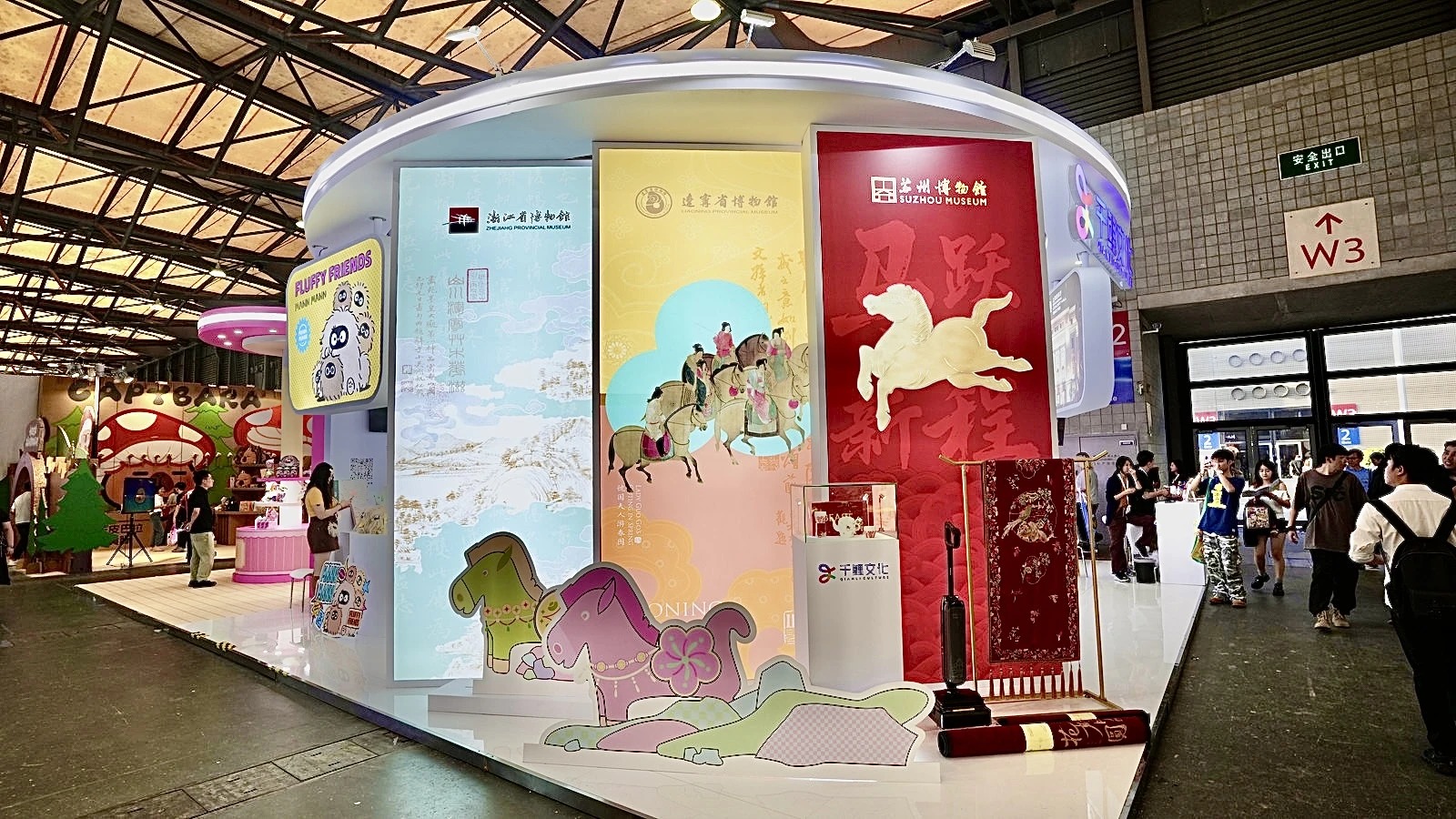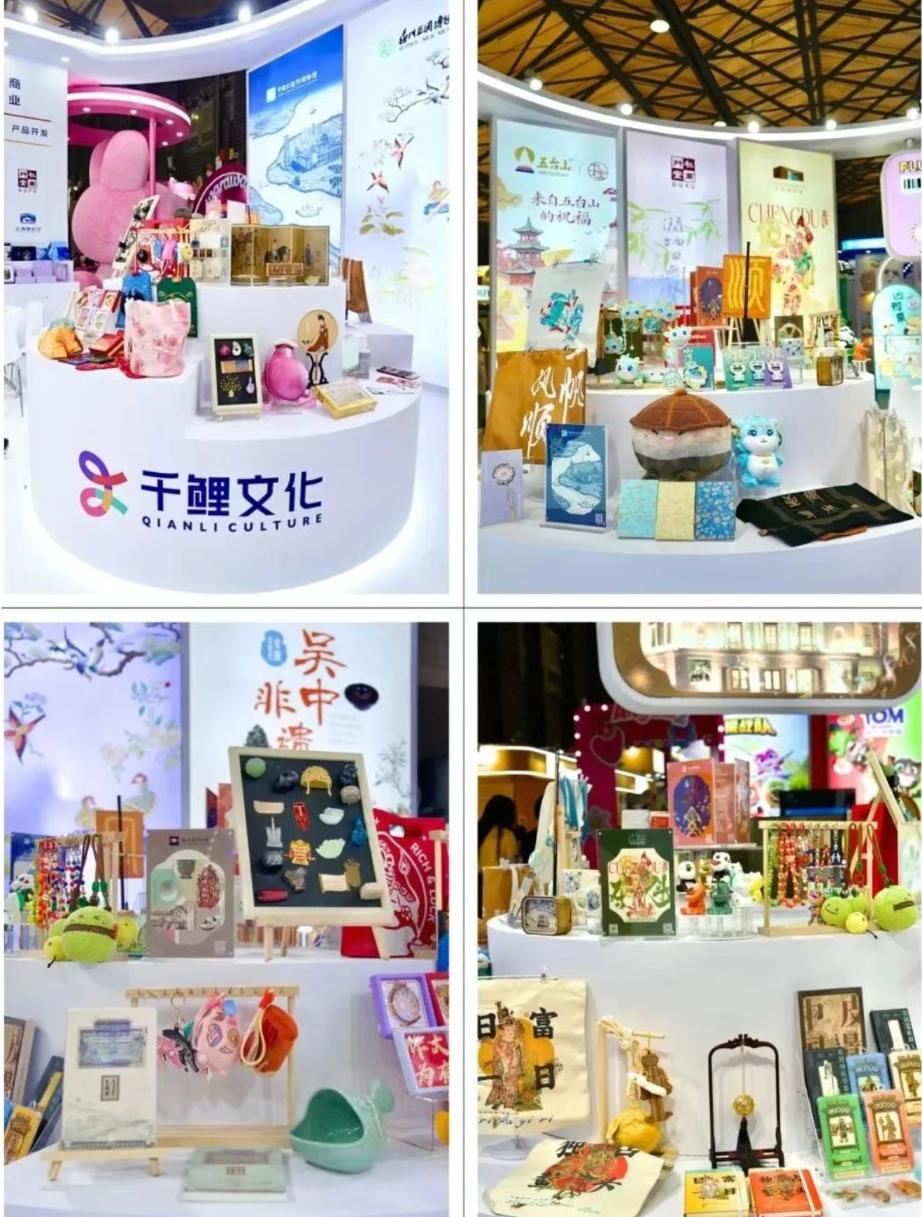 本次展会上,千鲤文化展集中展示了以往成功合作案例,让大家直观感受这些IP在不同领域的商业价值,全方位向大家展示旗下辽宁省博物馆、浙江省博物馆、苏州博物馆、五台山、成都博物馆、上海音乐厅、中国大运河博物馆、苏州丝绸博物馆、吴文化博物馆等千年文明的IP商业魅力。还有治愈系潮流IP鳄里斯和鱼英俊、MannMann等多元IP矩阵,满足了不同领域合作需求。