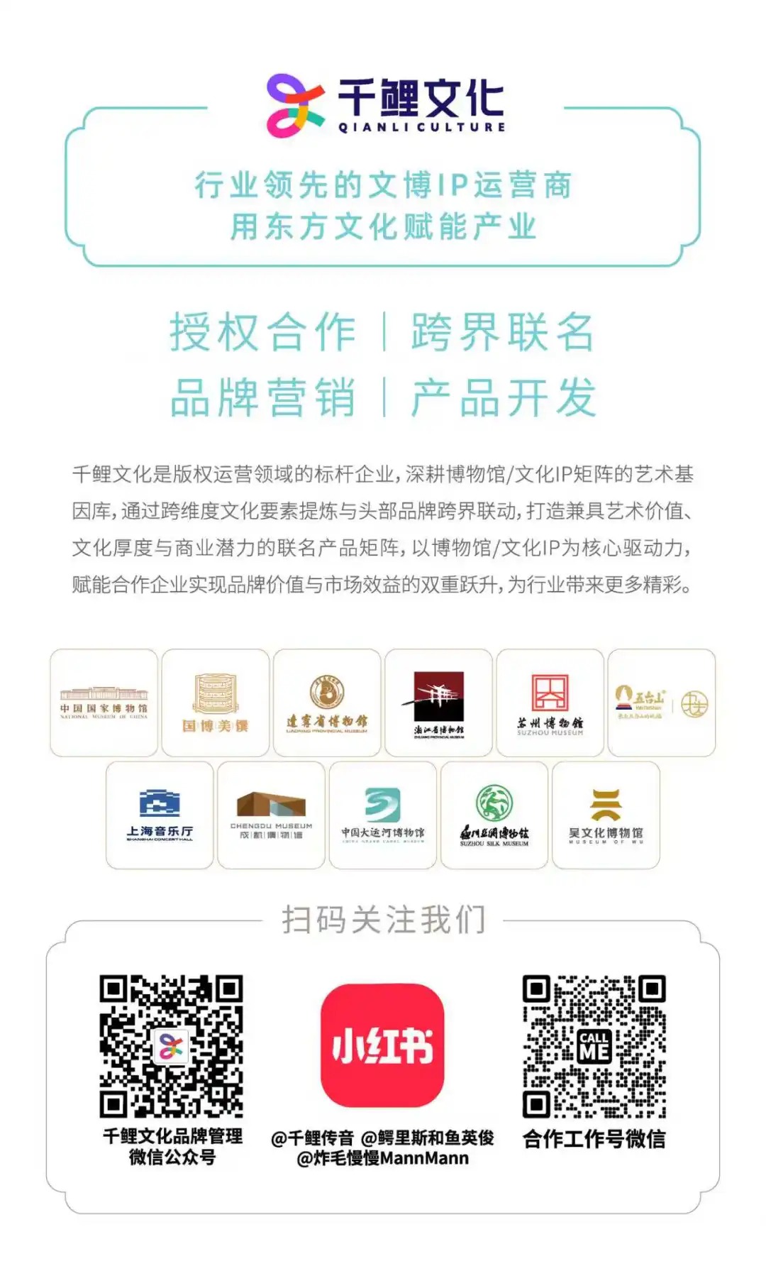 展望未来,千鲤文化将持续深耕旗下博物馆及文化IP的艺术元素,通过多维度的文化提炼与整合,与各领域杰出品牌展开深度合作,共同开发兼具高质量、深厚文化内涵与显著商业价值的联名产品,以实际行动践行文化赋能企业的承诺,推动文化与商业的深度融合与共赢发展。