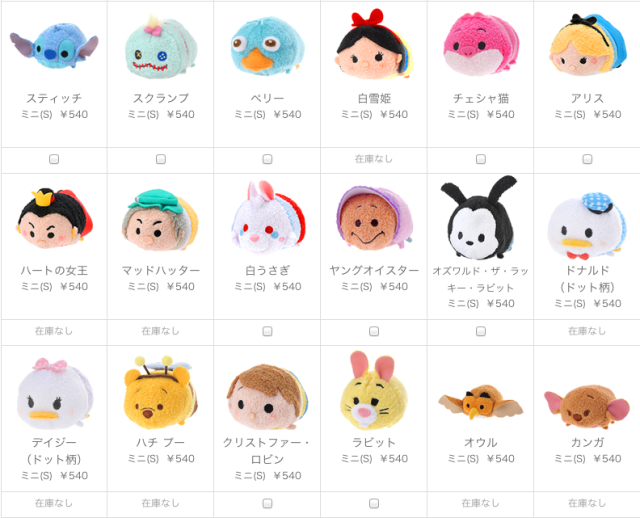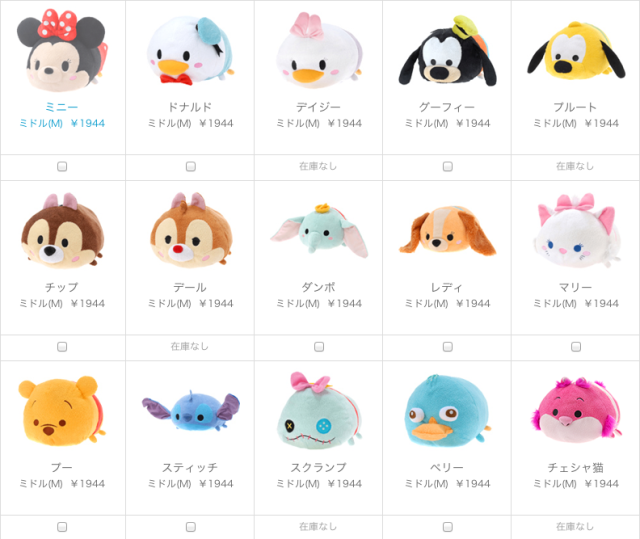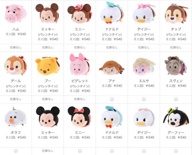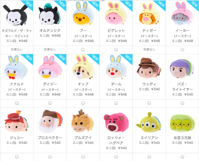 首先是美日人气都很高的TSUM TSUM系列,大小size都有