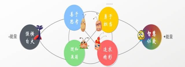 蚂蚁隐喻孩子,承载以小博大,经弱胜强的主题 ;蚂蚁社会性更强,更适合表现团队,承载“互助、合作、共赢”的内涵、它们囊括了这六个力的含义。