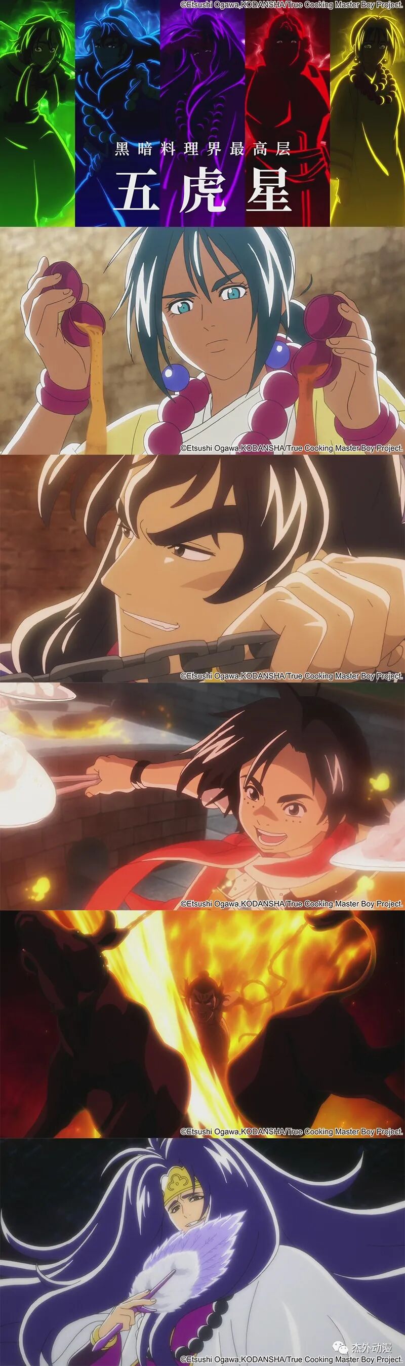 自去年10月的动画第一季播出以来,深受广大观众的关注,全网累计播放量已逾2亿。此前官方已经公开了来自“黑暗料理界”的新角色“五虎星”——“入云龙”凯由、“豹子头”亚刊、“飞天大圣”朱七、“青眼虎”密拉、“浪子”颜先,他们分别由国内知名配音演员阿杰、宝木中阳、路知行、李诗萌、郭浩然担当配音。正式PV中“五虎星”悉数登场,每个人都展现出了超凡的能力,他们将给刘昴星带来怎样的挑战,是第二季的一大看点。