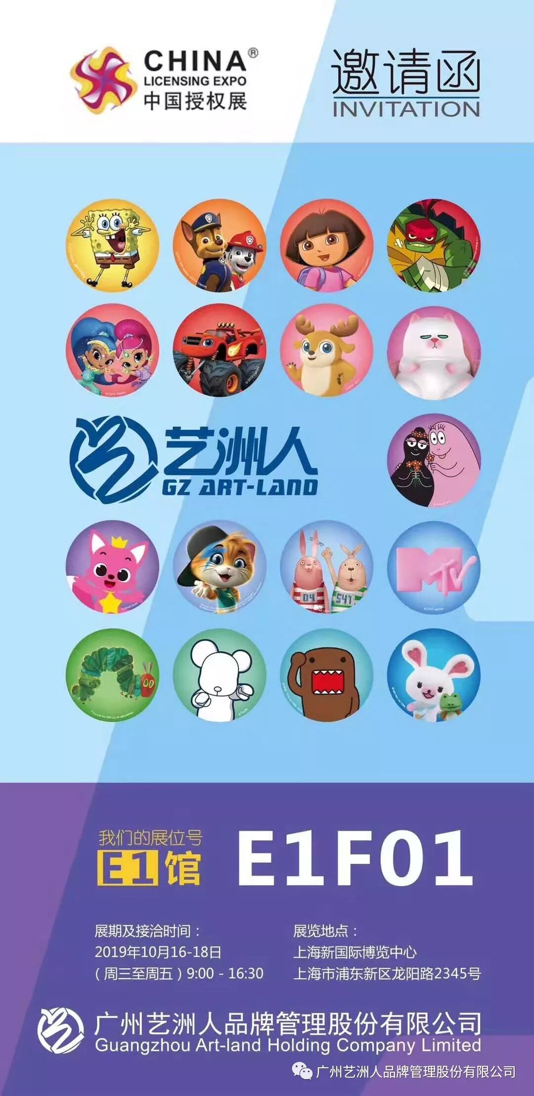 【2019中国授权展专题】艺洲人在中国国际品牌授权展(CLE)E1F01展位等你来!